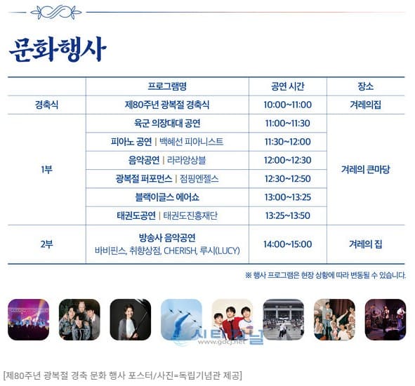 - 시간/장소: 8월 15일 오전 10시, 서울 세종문화회관