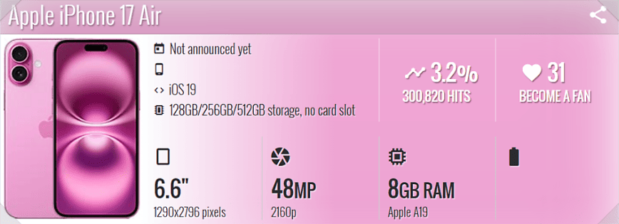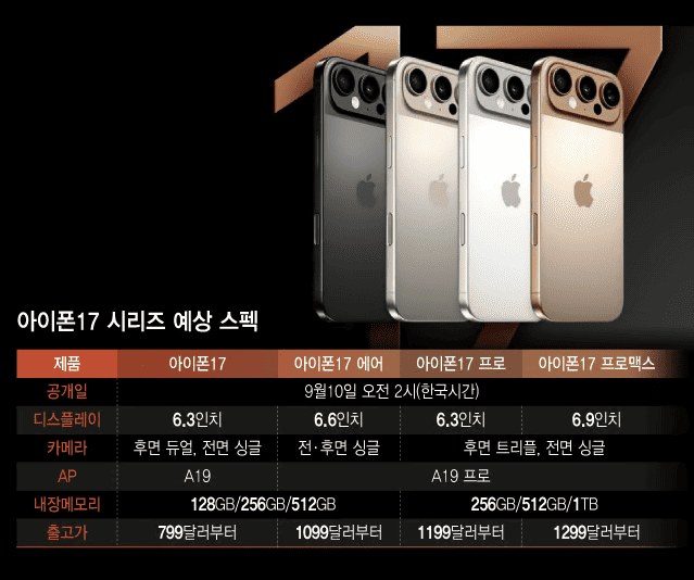 | 특수 모델 | - | iPhone 17 Air (두께 5.5mm 초슬림) |