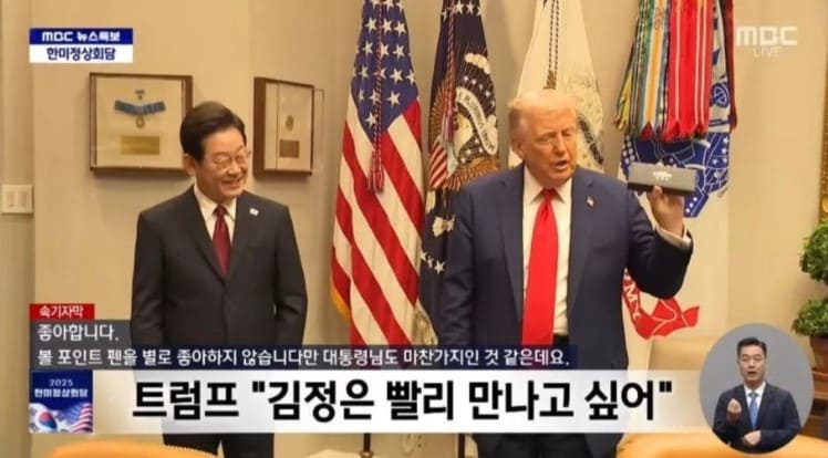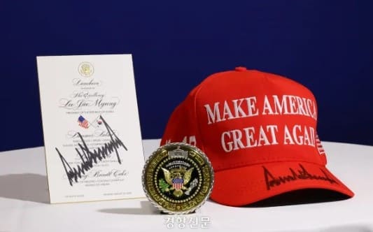 트럼프 대통령이 “멋지다, 가져가실 건가”라며 관심을 보이자, 즉석에서 선물하며 화기애애한 분위기를 만들었죠.