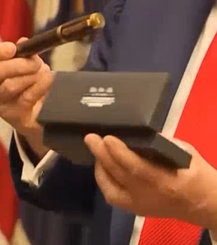 이 만년필은 시판 제품이 아닌 대통령 전용 맞춤 제작으로, 태극·봉황이 새겨진 케이스까지 갖춘 진정한 ‘국격 펜’이었습니다.