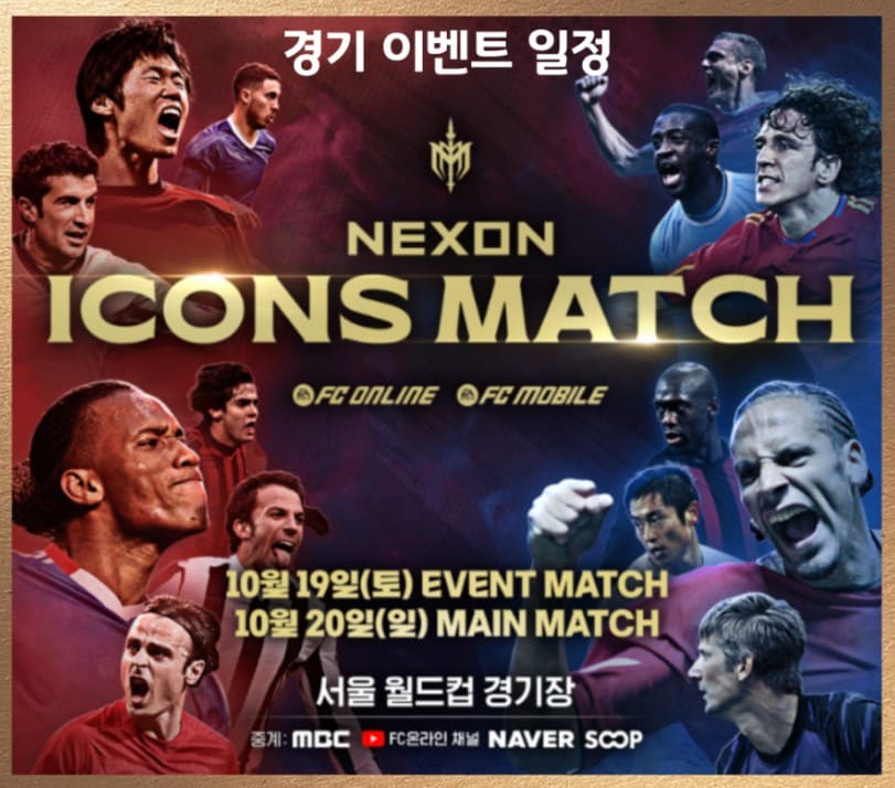 세계적인 축구 레전드들이 한국에 모인다! 2025년 9월 13일(토)~14일(일), 서울월드컵경기장에서 개최되는 ‘넥슨 아이콘 매치2’는 단순한 경기 그 이상! 티켓 예매 일정부터 좌석 정보, 확정 선수 명단, 팬 이벤트까지 모든 정보를 이 글 하나로 정리해드립니다.